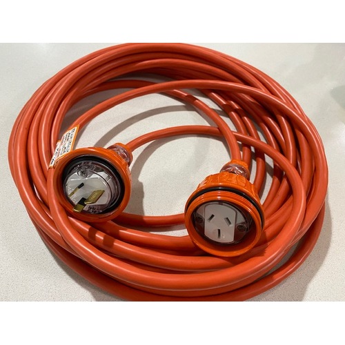 20 metre heavy duty shore power lead with 1 x Clipsal female male plug (orange) and  1 x Clipsal male plug (orange).