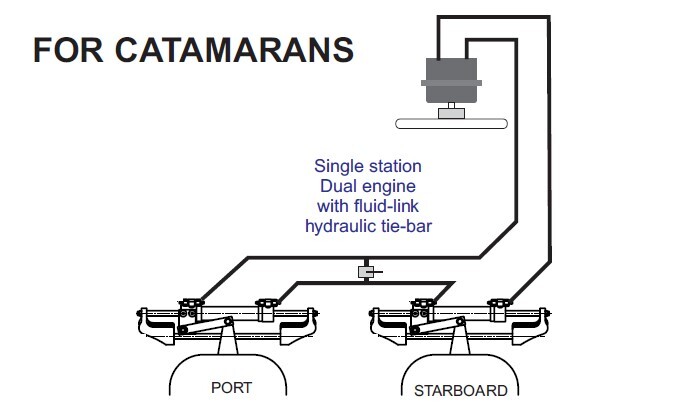 Hydrive have this excellent hydraulic steering kit for twin outboard monos or catamarans.