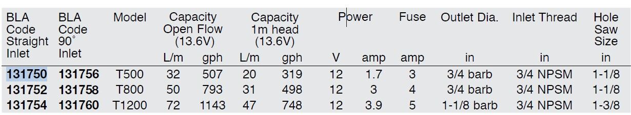Attwood Tsunami T800 GPH  Straight Aerator Live Bait Pump - 131752