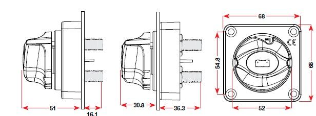 Four position rotating switch provides off, Battery 1, Both and Battery 2 alternatives.