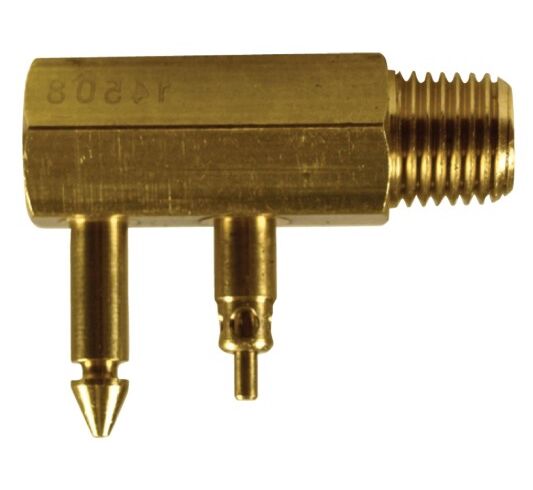 • Male brass two pin tank connector - suits Evinrude and Johnson outboard hoses (at the tank end).