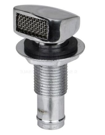 Chrome plated zinc marine breather with mesh screen.