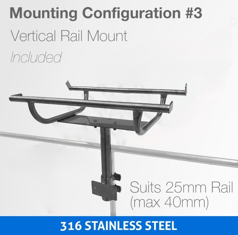 • Rail Bracket - which suits either vertical or horizontal rails 25mm to 40mm OD.