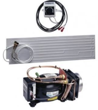 12-24 volt fan cooled refrigeration kits suitable for mounting in new or existing ice boxes.
