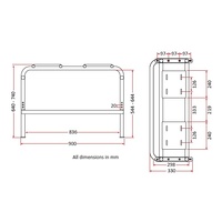 Inner Size: 836mm (wide) x 298mm (wide) x 544mm to 644mm (adjustable height)