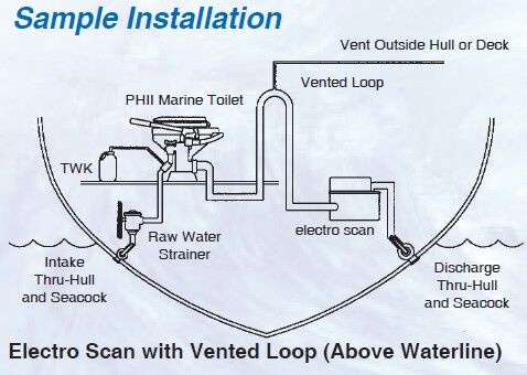 - The electro scan can be installed with one or two marine toilets to form a complete sanitation system.
