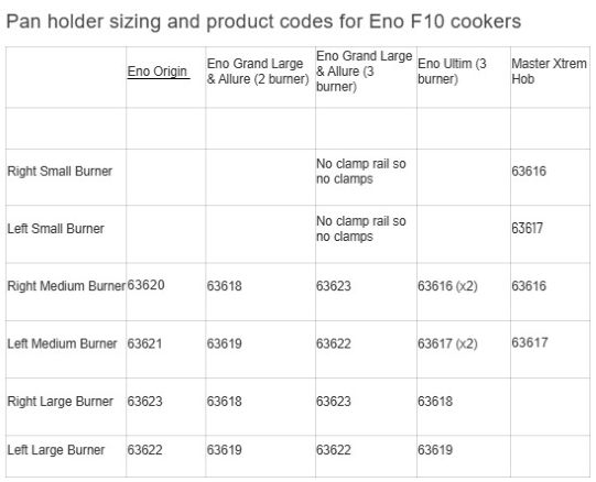 • Eno Grand / Allure 2 burner ovens - left large burner