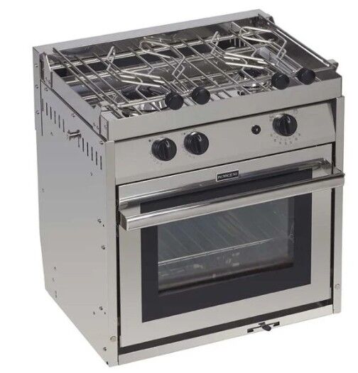 Quality marine stainless steel gimballed 2 burner COMPACT stove with oven and grill  - ideal for boats and also RVs.