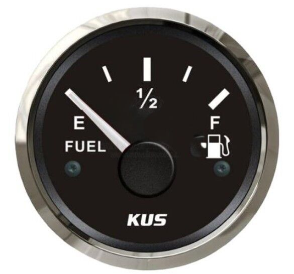 KUS Fuel Tank Gauge Black w SS Bezel 12/24V 240-33 OHMs - 43712