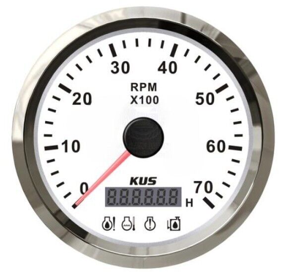 KUS Tacho w Hourmeter White w SS Bezel 12/24V - 43756