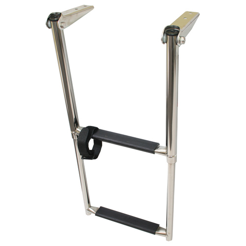 • Hinged bracket allows ladder to fold over platform. Ladder stores on top of platform. Telescopic closure to only 350mm length for simple storage.