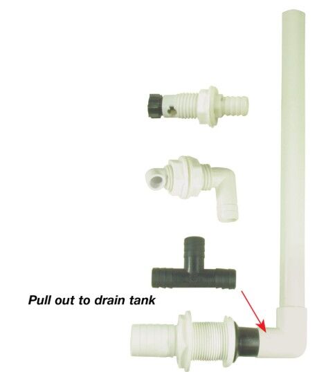 • Also included is a tank drain skin fitting (28mm hose size) that accepts