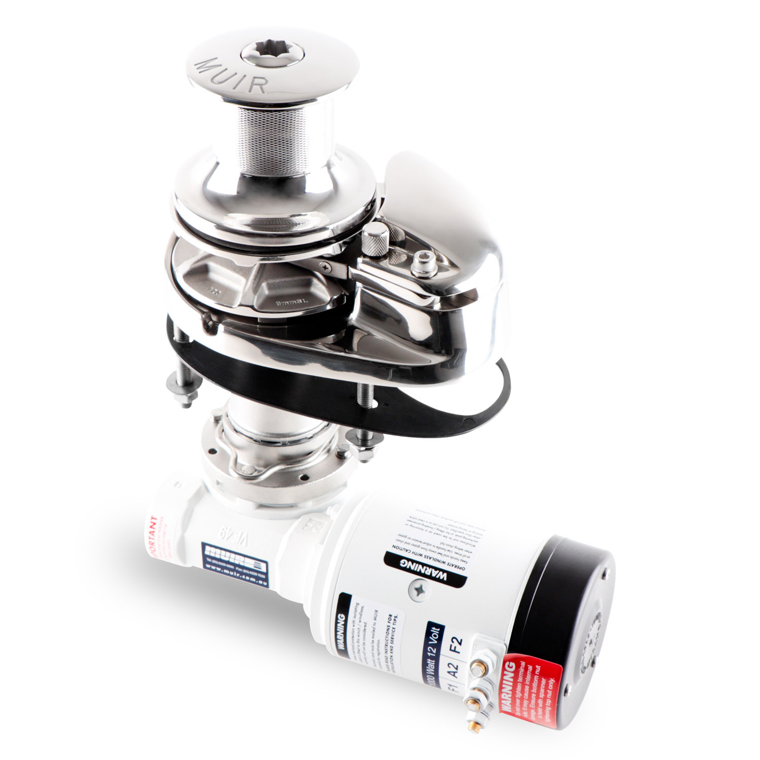 Important: Muir windlasses must be used in conjunction with a chain stopper or alternative snubbing device to take the load off the windlass while laying at anchor. the chain stopper and alternative snubbing system should also be used to secure the anchor in the fully raised position while under way.