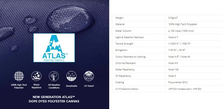 • Breathable marine canvas reduces condensation build-up and provides excellent UV protection