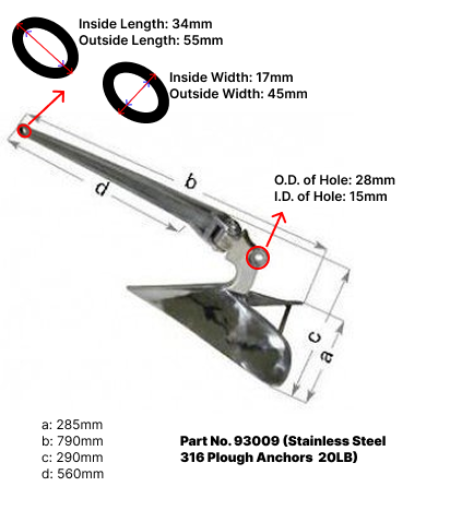 Polished 316 Stainless Steel Plow Anchor 12Kg 27lb  - 93012