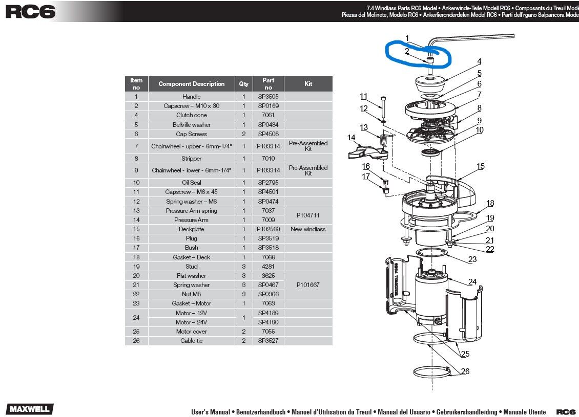 Replacement cap screw SP0169 for RC6 - M10x30 - Part Number #5 - SP0169