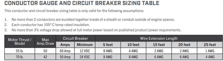 What size wire should I use on my RT Powerdrive Minn Kota?