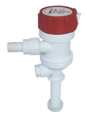 Rule’s tournament 400 series dual port thru-hull Livewell cartridge pump with straight through hull fitting attached.