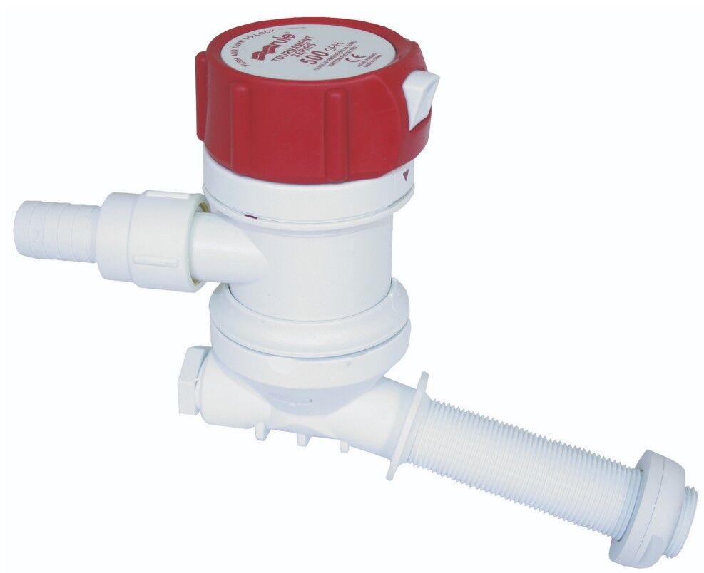 Rule Tournament 400 500GPH Live Bait Pump Dual Port with Angled Thru Hull Inlet RWB28