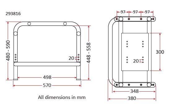 Overall: 570mm (wide) x 380mm (deep) x 480 to 590mm (adjsutable height)