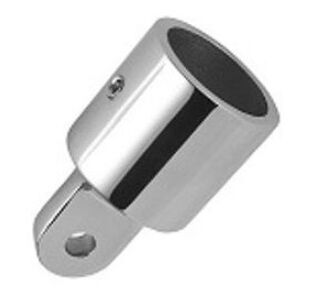 Sturdy, stainless steel tube end used to secure a bimini's frame tubing.