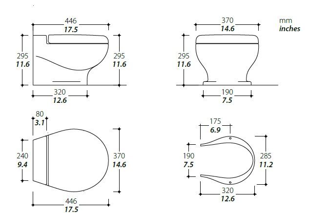 Thetford / Tecma NANO 12V Compact Short Low ECO Marine FRESH WATER Toilet with the 2 Button All in One 2 Button SFT Control