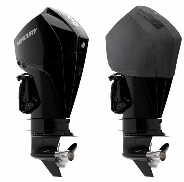 This vented half outboard cover is custom designed specifically for the Mercury outboard models shown below.