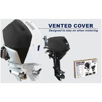 This outboard cover is designed to remain on when motoring - it was custom taylored so the vent slots line up with this model outboard's air intakes.