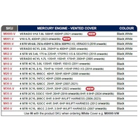 This vented half outboard cover is custom designed specifically for the Mercury outboard models shown below.