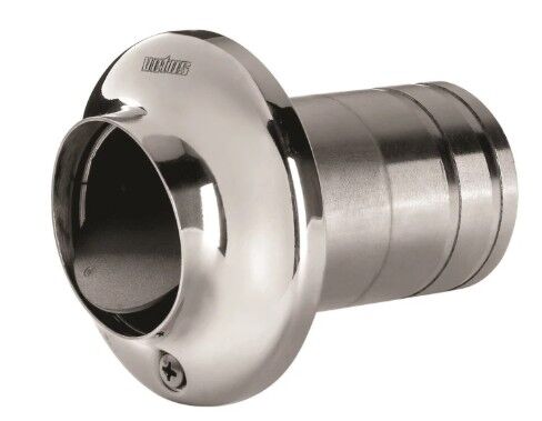 High-quality stainless-steel AISI 316 marine exhaust to transom connection with high-gloss polished cover.
