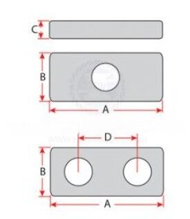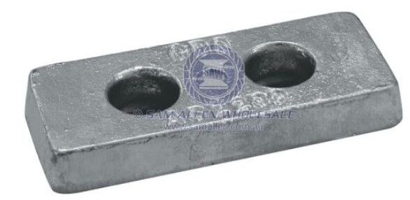 Bolt on rectangular zinc anode with 2 pre drilled holes.